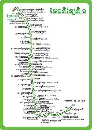 The line is represented on the official Phnom Penh City Bus map in Green.