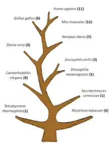 Evolutionary tree of eukaryotes showing in brackets the number of known linker histone H1 variants in a given species (see original data in [2])