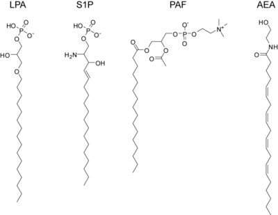 - ↑ Hla, T.; Lee, M. J.; Ancellin, N.; Paik, J. H.; Kluk, M. J. (2001). "Lysophospholipids — receptor revelations". Science. 294 (5548): 1875–1878. Bibcode:2001Sci...294.1875H. doi:10.1126/science.1065323. PMID 11729304. S2CID 46727063.