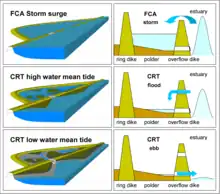 Conceptual sketch of a flood control area with a controlled reduced tide