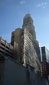 In 1957, Chicago City Council 5th ward alderman Leon Despres began the landmark preservation movement in Chicago, by adopting the Frank Lloyd Wright Robie House.[6][7] This led to the formation of the City Landmarks Commission, who chose 39 buildings as "honorary" landmarks.[6] That body evolved into the present Commission on Chicago Landmarks which was empowered by Despres's 1968 city ordinance to select and protect 12 important buildings as the inaugural official Chicago Landmarks.[6] Although the movement was unable to save either Louis Sullivan's Garrick Theater in 1960 or Sullivan's Chicago Stock Exchange Building in 1972, the efforts spawned the Landmarks Preservation Council of Illinois in addition to the municipal Commission.[6]
