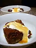 | Suet pudding | 1714[26][27] | Savoury or sweet | National | Steamed pudding made with flour and suet, with meat or fruit mixed in | |