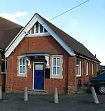 Sussex has many 19th-century Independent and Baptist chapels in this Vernacular style: a tiled, gabled roof, porch, and red-brick walls with round-arched windows. This example was built in 1879 by William Knight, a horticulturist who was also the chapel's first pastor. It is a Gospel Standard movement chapel.[12][23][24] |