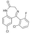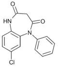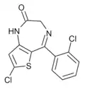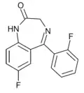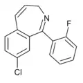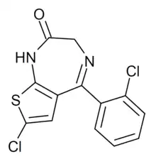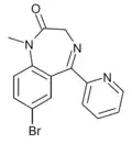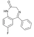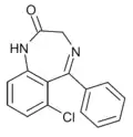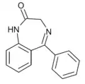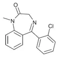 - ↑ Blair T, Webb GA (September 1977). "Electronic factors in the structure-activity relationship of some 1,4-benzodiazepin-2-ones". Journal of Medicinal Chemistry. 20 (9): 1206–1210. doi:10.1021/jm00219a019. PMID 926122.