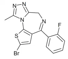- ↑ Huppertz LM, Moosmann B, Auwärter V (January 2018). "Flubromazolam - Basic pharmacokinetic evaluation of a highly potent designer benzodiazepine". Drug Testing and Analysis. 10 (1): 206–211. doi:10.1002/dta.2203. PMID 28378533.