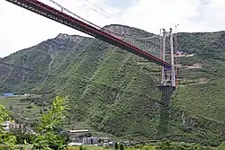 | 39 | Jin'an Bridge 金安金沙江特大桥 | 230 metres (750 ft)[14] | 1,386 metres (4,547 ft) | Suspension | 2020 | Lijiang, Yunnan 26°49′20″N 100°26′30″E / 26.82222°N 100.44167°E | Expressway | ||