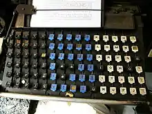 Elaoin Sdrétu, on the first two columns of a French linotype keyboard.