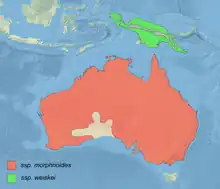 Little eagle range in red (pygmy eagle range in green)