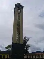 In 1660, the city of Loja was consecrated to St. Sebastian in order to prevent destruction by earthquakes. The present church dates from 1900. Perhaps the most notable landmark of Loja stands on the Plaza San Sebastian (also called the Plaza of Independence) - the 32 meter clock tower commemorates the declaration of independence from the Spanish Crown on November 18, 1820. The tower has four faces with brass bas relief depicting scenes from the city's history.