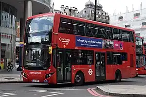 When re-tendered, route 13 was retained by London Sovereign with a new contract commencing on 31 August 2013. Wright Eclipse Gemini 2 bodied Volvo B5LHs were introduced on the same date.[9][10] In March 2015, Transport for London opened a public consultation on proposals to scrap the route.[11][12] The route was saved after intervention by Mayor of London Boris Johnson.[13][14] In September 2016, six Wright SRM bodied Volvo B5LHs entered service on the route.[15][16][17] In July 2016, under the tenure of new Mayor of London Sadiq Khan, TfL opened another consultation on proposals to extend the route to North Finchley and divert it to Victoria station replacing route 82.[18][19][20] This took effect on 1 April 2017 with it being operated by Tower Transit and becoming a 24-hour route.[21][22]