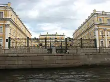 The society began meeting as early as 1807, but its regular monthly meetings began in March 1811 in "a beautiful and luxuriously appointed hall in Derzhavin's large home on the banks of the Fontanka"; as many as 500 people might attend its meetings, and it published its own journal, the Чтения в Беседе любителей русского слова (Readings at the Colloquy of Lovers of the Russian Word), whose nineteen issues consisted mainly of material presented at the meetings.[1] It was controlled by conservatives like Derzhavin and Alexander Shishkov who opposed the liberal reforms of Alexander I; in literary terms, it sought to ban gallicisms and other foreign infiltrations from the Russian language and looked to Church Slavonic and folk traditions to create an acceptable culture. It was opposed and mocked by the progressive Arzamas Society. It dissolved after Derzhavin's death in 1816, but was revived as a literary and scholarly society at Moscow University from 1858 to 1930; among the writers speaking at its meetings were A. K. Tolstoy, Ivan Turgenev, Afanasy Fet, Fyodor Dostoevsky, Leo Tolstoy, and Ivan Bunin.[2]