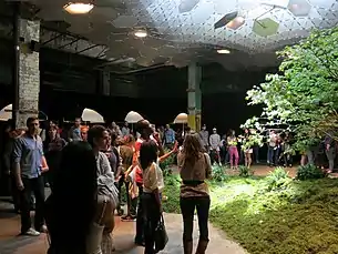 In 2012, the project raised over $150,000 from 3,300 backers on Kickstarter to create a full-scale exhibition of the solar lighting technology.[8] The project was named by Mashable as one of the top Kickstarter projects of that year.[9] In September 2012 an installation was opened on the Lower East Side to promote the project; titled "Imagining the Lowline," it consisted of a 30-foot (9m) wide aluminum solar canopy distributing natural sunlight onto a live cultivated landscape "park." The exhibit saw over 11,000 visitors and featured design talks, school visits, weekend street fairs and a political event. The executive producer of the exhibit was Robyn Shapiro and the industrial designer was Ed Jacobs with support from Brandt Graves.[10] Initial patent work in the associated technologies by David D. Winters, Winters Patent Law of Tennessee.