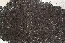 In the rubber plantations of tropical southern India in Kerala, Mupli beetles are considered a major nuisance, to the point of infestations rendering some buildings uninhabitable. While these beetles do not deliberately attack people, they produce a defensive odoriferous phenolic secretion when provoked that causes skin blisters. This is most commonly triggered by accidentally squeezing a beetle. They invade homes and other buildings in very large numbers, estimates ranging up to 4.5 million individuals in a single building.[1] They will then enter the dormant stage in masses, creating beehive-like masses under the roof. Like many other insects they are attracted to light, and can be more of a nuisance at night. One effective and harmless way to kill these beetles is to spray kerosene in the infected areas. It will kill them instantly as long as the kerosene is physically present. However, once vaporized, it becomes ineffective. Nevertheless, spraying petrol is one of the most cost-effective ways for the instantaneous termination of beetles although one must take care to preempt the possibility for fire.