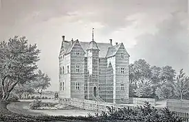 Lystrup is a manor house and estate located two kilometres west of Faxe, in Faxe Municipality, Denmark. The Dutch Renaissance style main building was built in 1579 for Chancellor of the Realm Eiler Grubbe (1532–1585). In the late 1600s, the main building was rebuilt and a new south wing was erected. [1] [2]