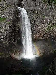 Månafossen is a waterfall in Gjesdal municipality in Rogaland county, Norway. The 92-metre (302 ft) tall waterfall is located along the river Månaåna, about 6 kilometres (3.7 mi) east of the end of the Frafjorden where the village of Frafjord is located. The waterfall is in a fairly isolated area. There is a parking area nearby with a steep, rough 250-metre (820 ft) hiking trail up a mountainside to see the waterfall. The hike takes about 30 minutes.[1]