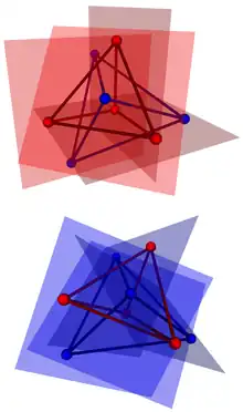 Example of Möbius configuration with face planes of each colored tetrahedra shown.