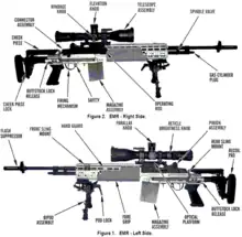 - Bipod: a Harris S-L bipod is used on the USMC DMR, but a modified version designed to be more durable is used on the EMR.
