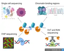 - ↑ Buenrostro JD, Wu B, Litzenburger UM, Ruff D, Gonzales ML, Snyder MP, et al. (July 2015). "Single-cell chromatin accessibility reveals principles of regulatory variation". Nature. 523 (7561): 486–90. Bibcode:2015Natur.523..486B. doi:10.1038/nature14590. PMC 4685948. PMID 26083756.