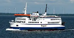MS Regula is a passenger and vehicle ferry built in Germany by Meyer Werft and launched in 1971. She was initially operated by LB ferries on the Helsingør–Helsingborg ferry route between Denmark and Sweden. Regula was the second of three identical sister vessels, and had an initial capacity of 800 passengers and 75 cars.[1]