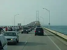 - ↑ "Bridge to be closed to public traffic during Annual Bridge Walk" (Press release). Mackinac Bridge Authority. 2017. Retrieved July 7, 2017.