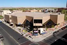 The Main Library is a public library in Downtown Albuquerque, New Mexico and the main branch of the Albuquerque Bernalillo County Library system. Opened in 1975, it was designed by local architect George Pearl and listed on the National Register of Historic Places in 2019.[3] The library is a concrete-framed Brutalist structure designed to maximize the flexibility of the interior space with a modular layout and movable partitions. Pearl considered it one of his "three or four most important" designs.[4] In 2020, the building was designated an Albuquerque historic landmark.[5]