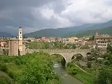 During its upper course the river descends rapidly through the scenic Valle Maira, passing through the centres of Acceglio, Prazzo, Stroppo, Macra, San Damiano Macra, Cartignano and Dronero; at Busca it leaves the valley and enters the plains, continuing through Villafalletto and Vottignasco. It passes just to the left of Savigliano, while the Grana-Mellea, its main tributary, passes to the right of the town: they continue in parallel before joining near Cavallermaggiore.