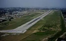 In 1942, the USMC was sent to Haiti to build a facility to service Douglas O-38 aircraft used by Haiti Air Corps to observe Nazi German activity in the region. The USMC built Bowen Field (also known as Chancerelles Airport[3]), a small civilian and military airport located near Chancerelles area near the Baie de Port-au-Prince.[4] Bowen Field was used by Haiti Air Corps for mail (1943) and passenger (1944) services,[5] then succeeded by the Compagnie haïtienne de transports aériens[6] beginning in 1961. In the 1950s and the 1960s, it served as an airbase for the US military in Haiti. The current airport located further northeast of Bowen Field was developed with grant money from the US government and mostly money collected from Haitian people (taxes, lottery, etc.), opened as François Duvalier International Airport in 1965, after the Haitian president at the time, François "Papa Doc" Duvalier. The old Bowen field was decommissioned after 1994 and is now hosts Internally Displaced Persons Camp and Centre Sportif. The runway is now part of Avenue Haile Selassie.