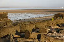 The human feature of the Bay is the Benoa Port facility located on reclaimed land in the middle of the estuary, and the connecting causeway that stretches 3 kilometres north to the mainland. The causeway being a solid barrier has greatly affected the natural flushing of the bay by tide and stream discharge. Benoa Bay is lined with a mangrove forest that has suffered depletion due to development and land reclamation. Estimates are that 50% of the mangrove forest has been lost since 1980 as a result of development. There are many fresh water rivers flowing into the estuary, predominantly those draining the central plains and mountain ranges to the north, and to a lesser extent from the southern Bukit Plateau.