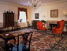 The Map Room takes its name from its use during World War II, when Franklin Roosevelt used it as a situation room where maps were consulted to track the war's progress (for such purposes, it was later replaced by the West Wing Situation Room). The room was originally finished as part of the extensive renovation of the White House designed by the architectural firm of McKim, Mead, and White in the administration of Theodore Roosevelt; the former basement billiard room was made into a formal space. In the Truman reconstruction of the White House (1949–1952), the room was paneled in the late Georgian style with wood sawn from the 1816 load-bearing timbers of the house. During the Kennedy administration, the room was used by the newly created Curator of the White House as an office, used to catalog donations of furniture and objects. Under the leadership of First Lady Pat Nixon, working with Curator Clement Conger, the room underwent a major redecoration in 1970, transforming it from an office to the parlor which remains today. The room was redecorated again in 1994.[1]
