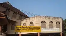 In 1999, then Chief Minister of Kerala E. K. Nayanar inaugurated the Mahakavi Moyinkutty Vaidyar Smarakam at the poet's birthplace in Kondotty as a cultural centre to attract research into Mappilappattu, and its studies and interpretations in Malayalam. The foundation stone was laid by, then Chief Minister, K. Karunakaran on 24 December 1994.[67] The centre runs certificate courses in ‘Mappilappattu’ and ‘Mappila kali’. It also has attached to it a folklore study centre, a historical museum, and a reference library containing rare manuscripts in Arabi-Malayalam and other handwritten manuscripts. Each year it conducts the Vaidyar Mahotsavam, a two or three-day festival that includes cultural and literary programmes related to all Mappila art forms. The Vaidyar Memorial Lecture is also delivered during the festival.[68][69] In 2005, a two-volume compilation of his works was released as a book Mahakavi Moyinkutty Vaidyar, Sampoorna Krithikal by the Mahakavi Moyinkutty Vaidyar Smaraka Samithi under the aegis of the Culture Department, Government of Kerala.[28] It also published a collection of essays on Moyinkutty Vaidyar titled Mahakavi Moyinkutty Vaidyar Padanangal. On 12 June 2008, M. A. Baby, Minister of Education and Culture, Government of Kerala, inaugurated the Mahakavi Moyinkutty Vaidyar Memorial Center for Studies and Research on Folk and Mappila Arts (SCARF) at the Vaidyar Smarakam complex. A regional centre for study of Mappila folk arts was also set up at Mogral in Kasargode district in 2009.[70]