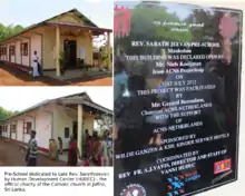 Rev. Fr. Yavis, director of HUDEC-Caritas Vanni, built a preschool and dedicated to Rev. Fr. Sarathjeevan on July 31, 2012.