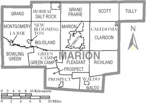 Map of Marion County, Ohio with municipal and township labels