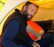 ![]() Markus Kronthaler at Camp One, Nanga Parbat, 2004 | |