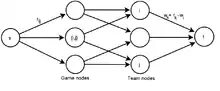 Let G = (V, E) be a network with s,t ∈ V being the source and the sink respectively. One adds a game nodeij – which represents the number of plays between these two teams. We also add a team node for each team and connect each game node {i, j} with i < j to V, and connects each of them from s by an edge with capacity rij – which represents the number of plays between these two teams. We also add a team node for each team and connect each game node {i, j} with two team nodes i and j to ensure one of them wins. One does not need to restrict the flow value on these edges. Finally, edges are made from team node i to the sink node t and the capacity of wk + rk – wi is set to prevent team i from winning more than wk + rk. Let S be the set of all teams participating in the league and let