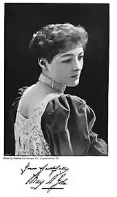 According to Yohé, she was introduced to Francis Hope at Delmonico's Restaurant in New York before she came to England in the early 1890s.[37] The couple was often seen together at fashionable night spots around London.[38] On March 30, 1894, Burke's Peerage announced their wedding.[39] The wedding took place on November 27, 1893, at Hampstead Parrish in London.[38] Press reports at the time claimed Hope's family offered him around £200,000 to call off the engagement. In June 1894, The New York Times reported that Hope had filed for bankruptcy with liabilities amounting to £405,277 and assets of £194,042.[40] At the time of her marriage to Hope, there had been reports in the press implying she had been married twice before: first, in San Francisco to the son of a General Williams, and next in Massachusetts to a local politician.[38]