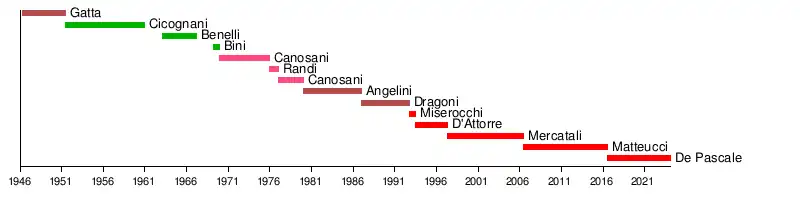 | 1 | Gino Gatta | 1946 | 1951 | PCI | PCI • PSIUP | 1946 |