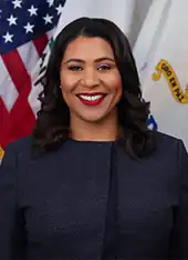 The current mayor is former District 5 supervisor and president of the Board of Supervisors London Breed, who won a special election following the death of Mayor Ed Lee on December 12, 2017. Breed served out the remainder of Lee's uncompleted term (until January 8, 2020), after which she is eligible to run for two full terms of her own including the 2019 San Francisco mayoral election which she won.[3][4]