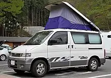 The Mazda Bongo Friendee was an eight-seater minivan. Some had Mazda factory-fitted kitchens. Many were imported to the UK and converted to camper vans. All of them had fold-down seats downstairs to make a double bed, and on many models there was an "Auto Free Top" elevating roof which could sleep two more people. Flat-top versions were also available in Hong Kong and sold by official dealer.