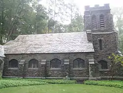 Mead Memorial Chapel is a historic Episcopal chapel at 2 Chapel Road in the hamlet of Waccabuc, town of Lewisboro, Westchester County, New York. It was designed by Hobart B. Upjohn (1876-1949) and built in 1905–1906 in a late Gothic Revival style. It is a rectangular stone building with a steep slate roof. A wing was added in 1929, known as Mead Memorial Hall, and it houses the Mead family archives. It features a bell tower pierced by Gothic arch shaped louvered windows. It was built by Sarah Frances Studwell Mead as a memorial to her husband, George Washington Mead (1827-1899).[2] The Mead family also owned the separately listed The Homestead.