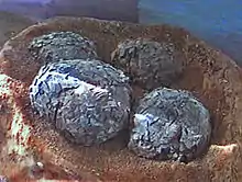 Megaloolithus is an oogenus of dinosaur egg.[1] Some eggs belonging to this oogenus may have been laid by the titanosaur Hypselosaurus. They are known for having thick eggshells, at least 1.5 millimetres (0.059 in) thick, and the nearly spherical shape of the eggs.[2] They are primarily found in India and Europe, but some specimens have been found in South America.[3]