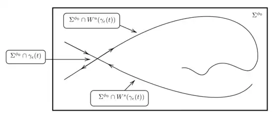 The manifolds and may intersect in more than one point as shown in Figure 5. For it to be possible, after every intersection, for sufficiently small, the trajectory must pass through again.