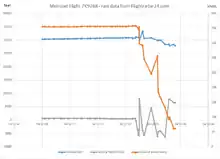 The Islamic State's Sinai branch said in a statement the same day that it had brought down the airliner. Wassim Nasr, France 24's expert on jihadi movements, said that the IS group has never claimed an attack they did not commit.[14] Russian media outlets claimed that the pilot reported technical problems and had requested a landing at the nearest airport before the A321 went missing. This claim was disputed by other sources, including the Egyptian authorities, and subsequent analysis of the flight recorder data confirmed that this was false.[38][39] The Egyptian Civilian Aviation Ministry issued a statement that indicated the flight was at an altitude of 31,000 ft (9,400 m) when it disappeared from radar screens after a steep descent of 5,000 ft (1,500 m) in one minute. Flightradar24 shows the aircraft climbing to 33,500 ft (10,200 m) at 404 kn (748 km/h; 465 mph) before suddenly descending to 28,375 ft (8,649 m) at 62 kn (115 km/h; 71 mph) approximately 50 km (31 mi; 27 nmi) north east of Nekhel, after which its position was no longer tracked.[40] A bomb exploded in the aircraft, causing uncontrolled decompression, and the aircraft disintegrated in mid-air.[41] All 224 passengers and crew died.[39]