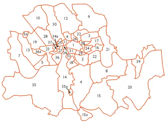 5a Kensal Green; 15a Penge Hamlet; 34a St Anne; 35a detached portion of Streatham parish; 36a Kensington Gardens