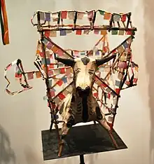A "torito" or bull frame for fireworks on display at the Museo de Arte Popular in Mexico City