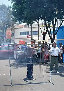Although pre Hispanic cultures had ways of manipulating fire for ceremonial purposes, the popularity of fireworks came to Mexico late, in the 19th century.[1][2] Fireworks were invented by the Chinese, and for ceremonial and religious use, which is their main use today in Mexico.[3]