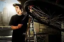 Michael Chacon (born July 3, 1992) is a professional fixed-gear bicycle rider. He is ranked among the top fixed freestyle riders in the world. Chacon started riding fixed gear bikes in his hometown of Culver City, CA in 2009. Before turning professional, Chacon gained a local following performing freestyle tricks along the boardwalk of Venice Beach, CA. Since his pro debut in February 2010, he has won and placed in fixed gear competitions internationally.