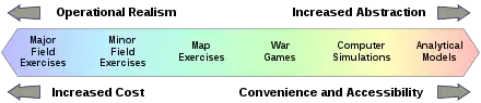 Military simulations range from field exercises through computer simulations to analytical models; the realism of live manoeuvres is countered by the economy of abstract simulations.[1]