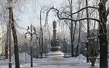 Brest Millennium Monument (Belarusian: Помнік Тысячагоддзя Брэста) was designed by the Belarusian architect Alexei Andreyuk and sculptor Alexei Pavluchuk to commemorate the millennium of Brest, Belarus. It was erected in 2009 at the intersection of Sovietskaya Street and Gogol Street in Brest. The project was financed by the state budget and public donations.