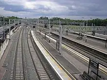 In May 2006, the Department of Transport announced a plan to upgrade the station.[6] The first phase added a down fast line platform 6, so that the existing platform 5 could be used for stopping express trains in either direction.[6] The second phase provided an additional terminating bay platform (2A), nominally to extend the Marston Vale Line (Bedford – Bletchley) service via the West Coast Main Line (WCML) to Milton Keynes Central.[7] This 5-car bay platform is indented into platform 1. The original bay platform 1 line was extended northwards to become a through platform (becoming the up slow line), and platform 2 line is now a terminating and reversing line, avoiding conflicting crossing movements.[6] This work was completed on 29 December 2008.[8] As of August 2023, a direct service between Bedford and Milton Keynes Central is not in any published plan, being overtaken by later events (see § East West Rail, below).