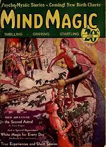 In June 1931, Shade Publishing Company of Philadelphia launched Mind Magic. At only 64 pages, it was short for a pulp magazine; Shade had planned to set the price at 25 cents, but settled on 20 cents for the launch, which was still higher than most of the magazines it competed with.[2] The editor was G.R. Bay, who was probably the main person in Shade who was interested in offbeat and unusual stories.[3] The target audience was readers interested in the occult and spiritualism. The non-fiction in the magazine including stories of supposedly true experiences with the supernatural, and articles with titles such as "Make Your Ideas Work" and "Secret of Riches". The fiction, described in the magazine as "Psycho-Mystic Stories", was formulaic: magazine historians Mike Ashley and Frank Parnell describe the material as "slight, shallow stories with undeveloped ideas". Among the better-known writers were Manly Wade Wellman, who appeared in the first issue with "Faithful Footsteps", and August Derleth, whose "Wraiths of the Sea" was in the following issue. Ralph Milne Farley's "The Man From Ouija Land" was one of the longer stories to appear; it was serialized in the July and August issues, and later printed in the UK under the title Dangerous Love. Other authors included Ed Earl Repp and Mary Elizabeth Counselman. The title was changed to My Self after four issues, Ashley and Parnell suggest that this might have been in order to broaden the appeal of the magazine, but it did not work, and the December 1931 issue proved to be its last.[2][4]